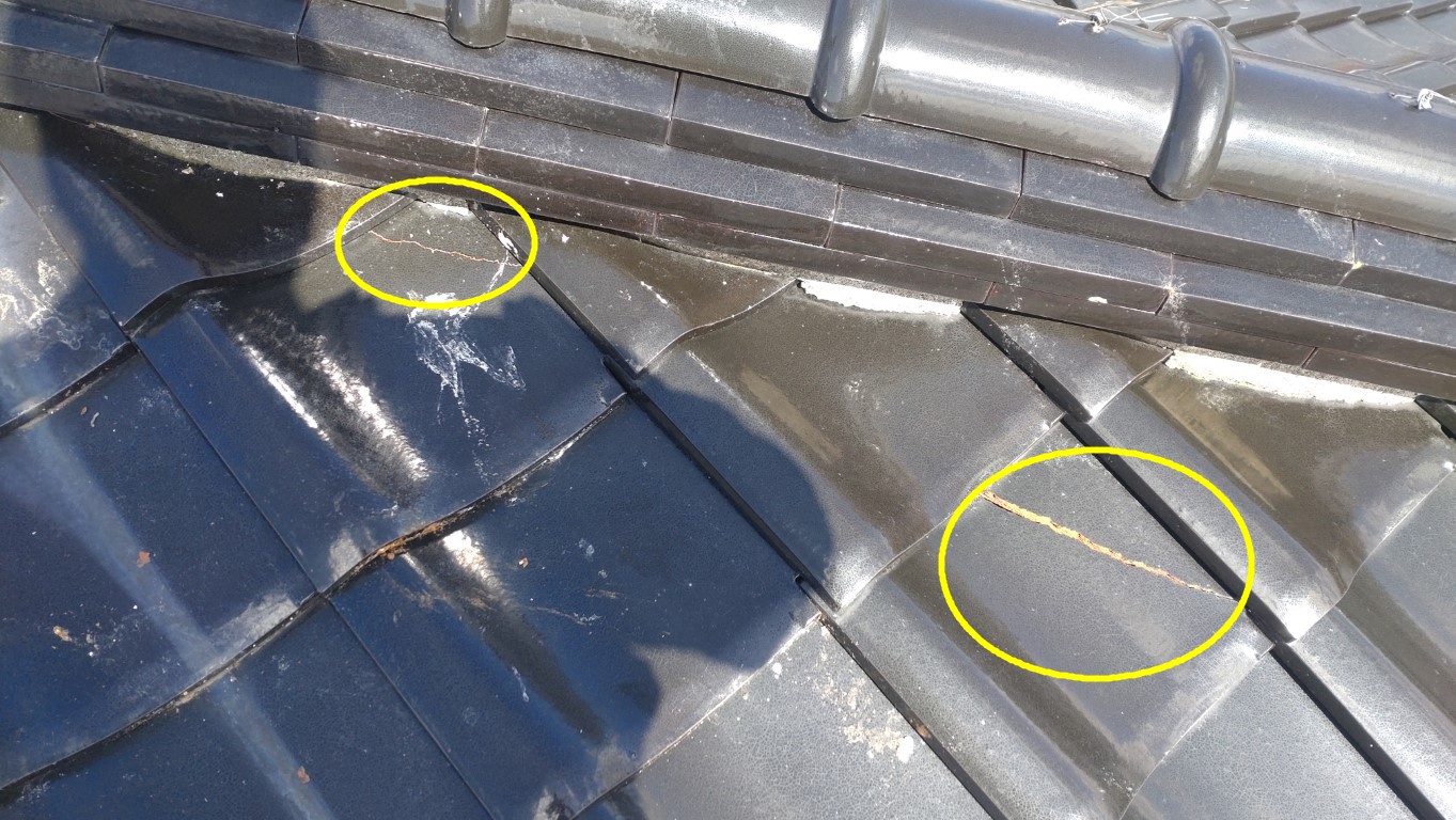 確認してみると、話に聞いていたとおり 複数枚の瓦が割れていました。