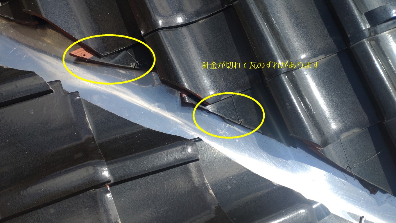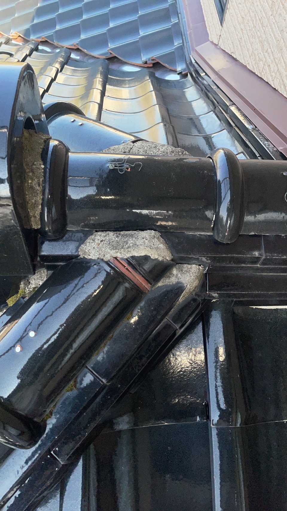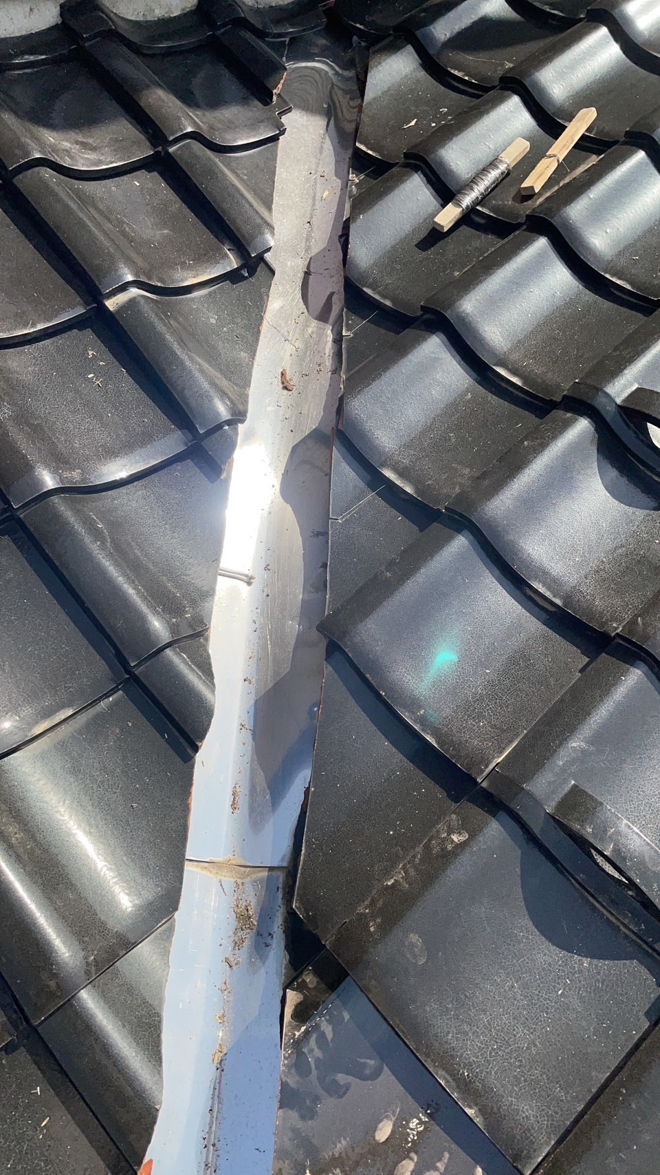 谷部は雨水を排水させる大切な部分ですが、同時に雪も溜まりやすく、その雪が融け出すときに周辺の瓦を引きずってしまう現象です。こちらもしっかり補修します。