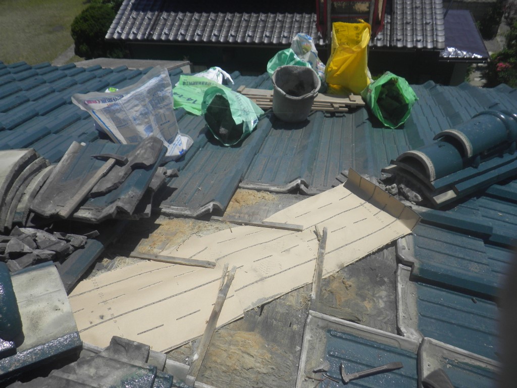 工事に入らせて頂き、まずは隅棟の部分解体から始めていきます。