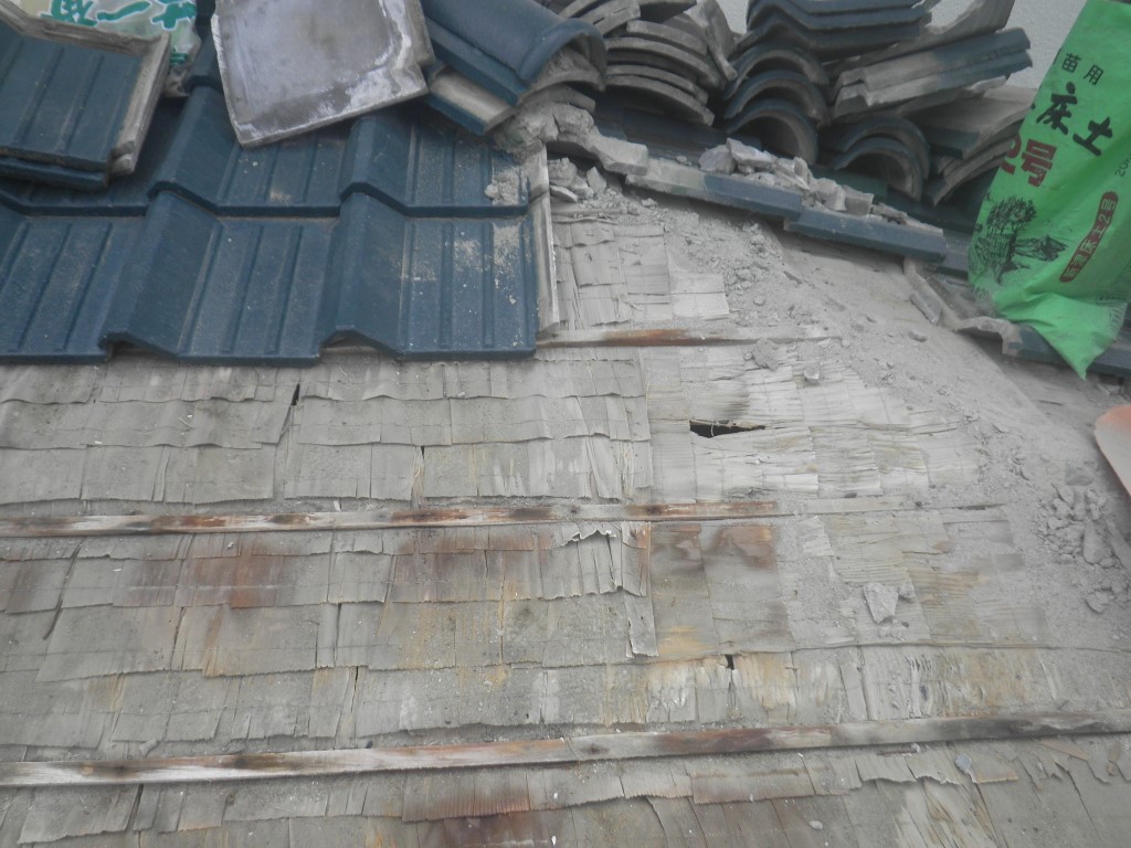 続いて1F屋根面の雨漏りしている部分になります。こちらも瓦を一時的に解体します。